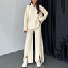 Paket beinhaltet: 1 * Gemütliches zweiteiliges Rippstrick-Set für Damen mit Hose mit geschlitztem Bein